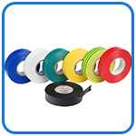 В ассортименте представлена изолента в семи вариантах цвета: белый, красный, синий, желтый, зеленый, черный и желто-зеленый.