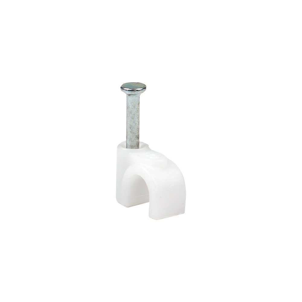 Поставляется в комплекте с уже вставленным гвоздем. Материал изготовления скобы гибкий самозатухающий ударопрочный полипропилен без галогенов. Материал изготовления гвоздя закаленная оцинкованная сталь, не подвергается коррозии.