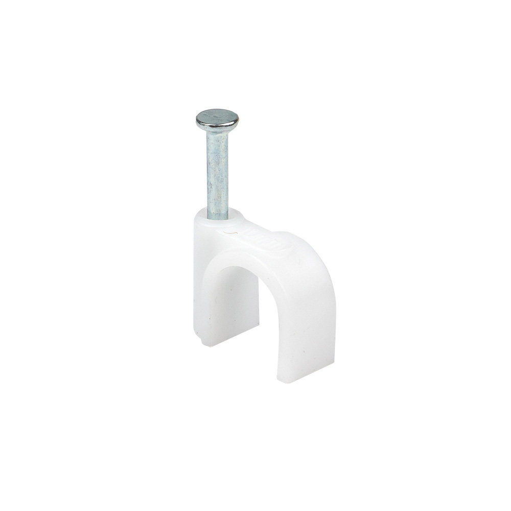 Поставляется в комплекте с уже вставленным гвоздем. Материал изготовления скобы гибкий самозатухающий ударопрочный полипропилен без галогенов. Материал изготовления гвоздя закаленная оцинкованная сталь, не подвергается коррозии.