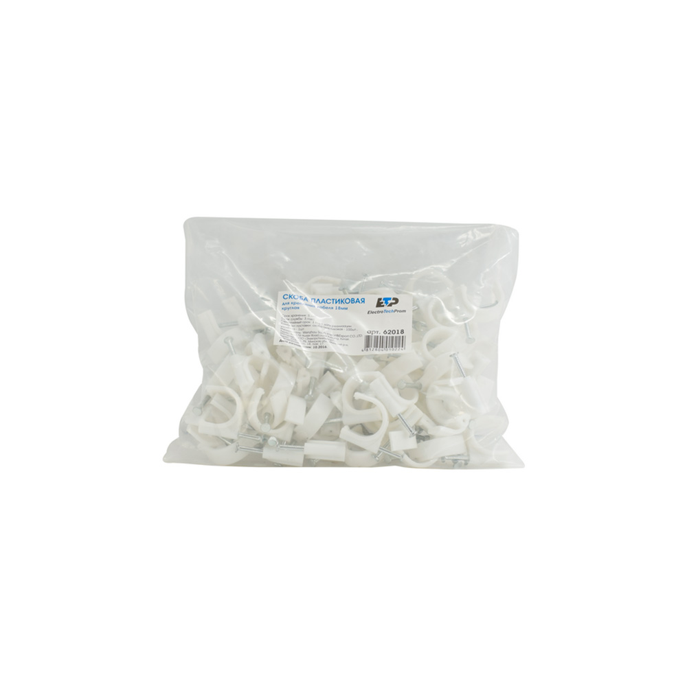 Поставляется в комплекте с уже вставленным гвоздем. Материал изготовления скобы гибкий самозатухающий ударопрочный полипропилен без галогенов. Материал изготовления гвоздя закаленная оцинкованная сталь, не подвергается коррозии.