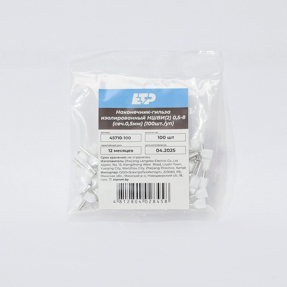 Наконечник штыревой втулочный изолированный НШвИ(2) ТЕ 0508 ETP предназначен для оконцевания методом