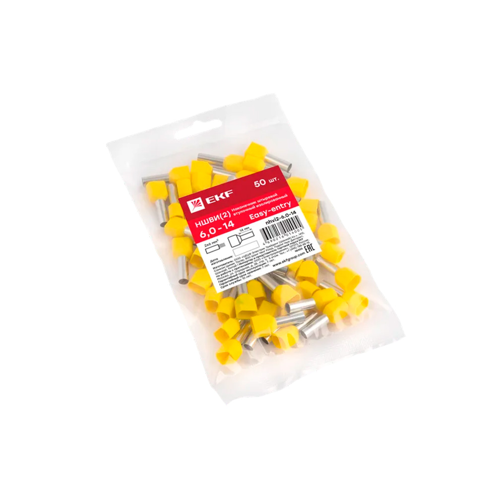 Одинарные и двойные втулочные наконечники (НШвИ и НШвИ2) EKF PROxima являются единственными специально разработанными наконечниками под опрессовку, которые полностью заменяют обязательный процесс облуживания многопроволочных медных проводов (типа ПВ-3, ПВС и т.п.) при монтаже различного электрооборудования. Втулочные наконечники состоят из медной луженой трубки, один конец которой развальцован для облегчения ввода многожильного провода и изолирующей манжеты из полипропилена.