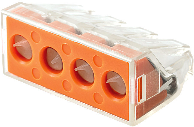 Строительно-монтажная клемма СМК 773-174 ETP имеет 4 отверстия. К данной клемме можно подключить