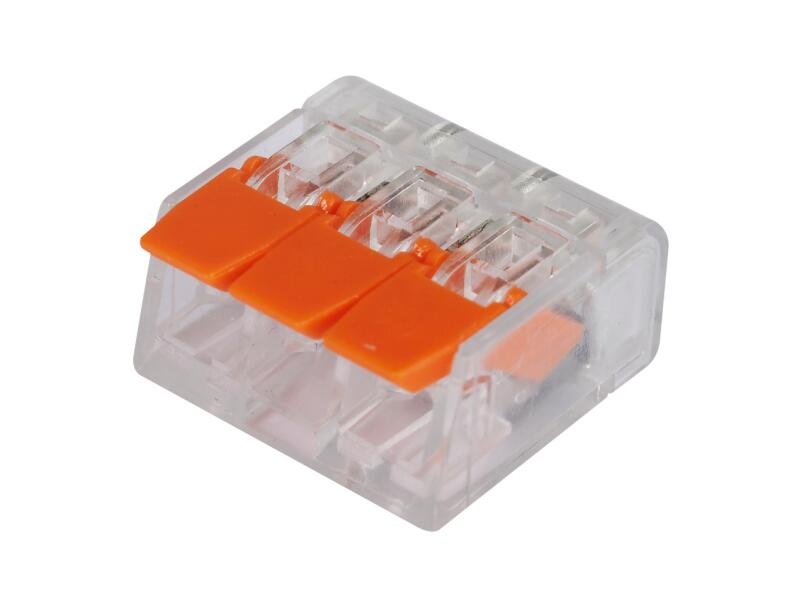 Строительно-монтажная клемма СМК 221-413 ETP имеет 3 отверстия. К данной клемме можно подключить