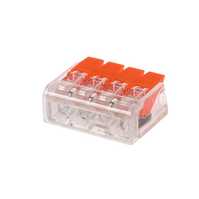 Строительно-монтажная клемма СМК 221-414 ETP имеет 4 отверстия. К данной клемме можно подключить