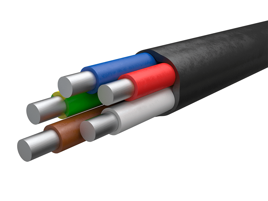 Кабель силовой АВВГ с монолитными алюминиевыми токопроводящими жилами, производящийся в ПВХ-изоляции и в ПВХ-оболочке, изолированные жилы 2-5 жильных кабелей скручены в сердечник или, для плоского исполнения кабеля, две или три изолированных жилы уложены параллельно в одной плоскости.