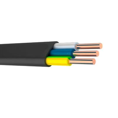 Кабель имеет плоское исполнение (обозначение «П»), при котором изолированные жилы уложены параллельно в одной плоскости. Такая форма упрощает прокладку в стеснённых условиях, снижает общую толщину кабеля и удобна при монтаже под штукатурку или в тонких каналах. Токопроводящие жилы — медные, что обеспечивает высокую электропроводность и стабильность контактных соединений.