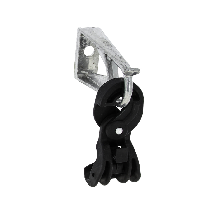Комплект промежуточной подвески ES1500 предназначен для крепления изолированной несущей жилы провода СИП-2 на промежуточных и угловых опорах при углах отклонения до 50° при подвеске с внешней стороны линии и при углах отклонений до 30° при подвеске внутри линии. Крепление комплекта к опоре производится с помощью 2 витков ленты или анкерного винта.