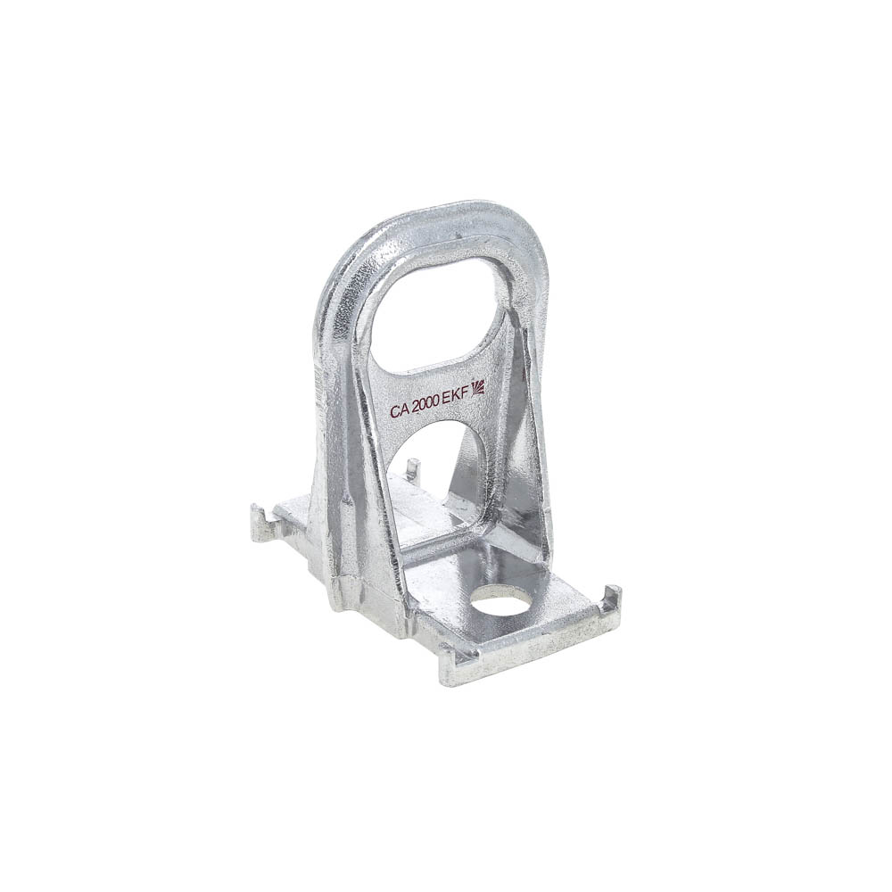 Кронштейн анкерный CА2000 обеспечивает крепление одного или двух анкерных зажимов для магистральных СИП к опоре или стене здания. Крепление осуществляется двумя болтами М14 или М16 или при помощи двух полос металлической ленты 20мм. Ограничители препятствуют соскальзыванию ленты. Разделительные риски препятствуют нахлесту витков ленты. Кронштейн представляет собой моноблок из алюминиевого сплава с высокой механической прочностью и высокой устойчивостью к коррозии в промышленной среде, влажном климате и при низких температурах. Разрушающая нагрузка - 2000 кгс.