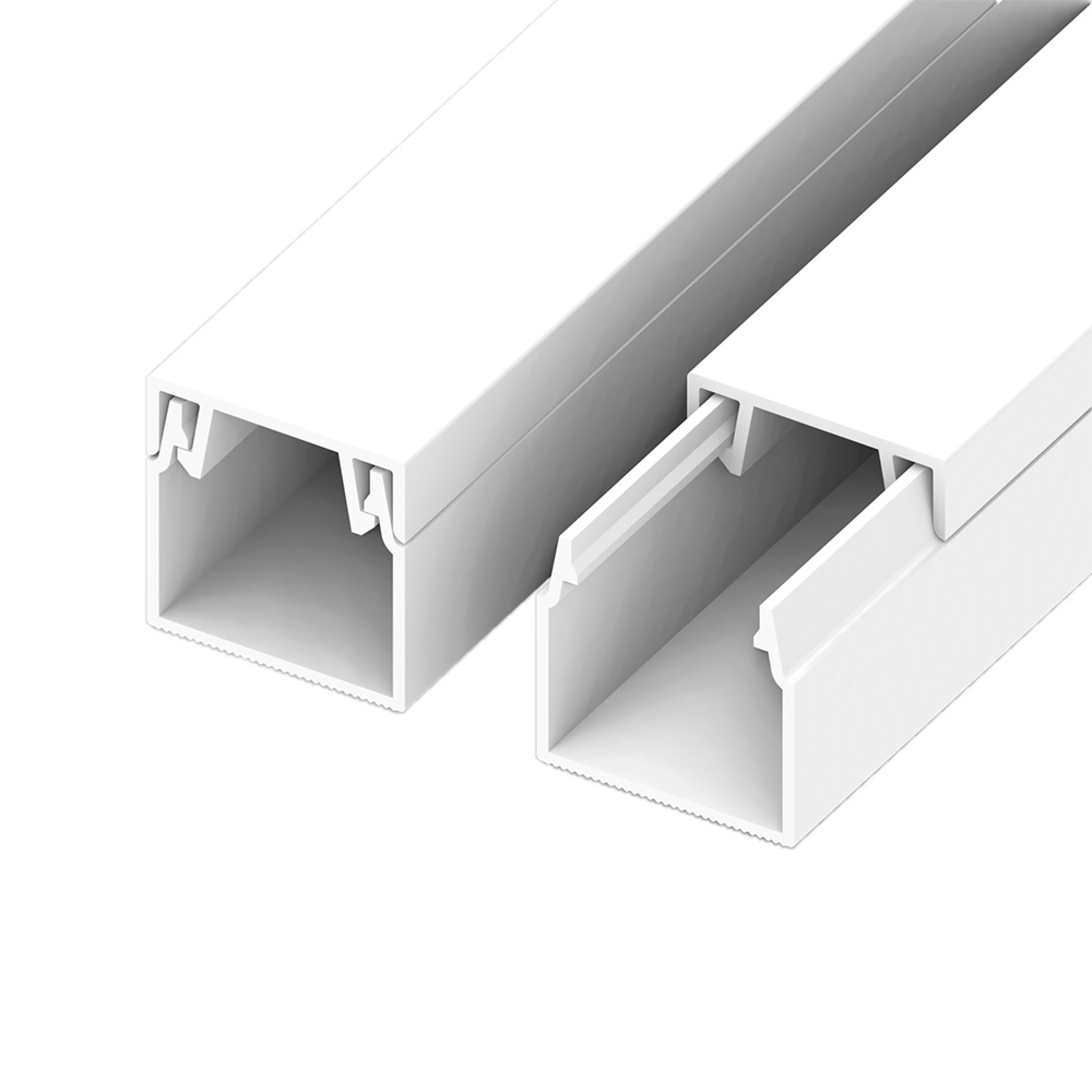 Кабель-канал — электротехническое изделие, представляющие собой замкнутый профиль прямоугольного сечения с плоским основанием. Предназначен для прокладки изолированной проводки при монтаже сетей (электрических, телефонных и.т.д) до 1000 Вольт по сгораемым и не сгораемым основаниям, с учетом требований правил устройства электроустановок, сетей постоянного и переменного тока до 1000 Вольт. Подходят для прокладки проводки скрытым, полускрытым и открытым способами. Материал – самозатухающий не поддерживающий горение ПВХ – пластикат. При сильных перегибах или деформировании кабель канала сохраняет свою форму благодаря спец. добавкам в составе пластмассы. Двойной замок плотно соединяет крышку с кабельным каналом, что повышает жесткость конструкции и обеспечивает защиту кабеля от повреждений; позволяет многократно открывать (закрывать) крышку кабельных систем без деформации; увеличивая срок их службы. Цвет – белый. Монтаж при температуре - от -5 до +60 градусов С. Диапазон рабочих температур- от –25°С до +60°С.