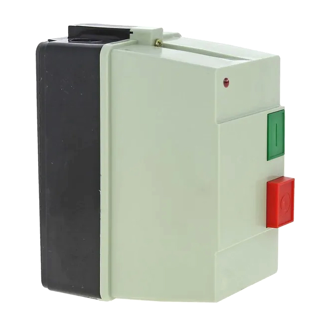 - Тип устройства: магнитный пускатель прямого пуска в пластиковом корпусе со встроенным тепловым реле и кнопками управления.
