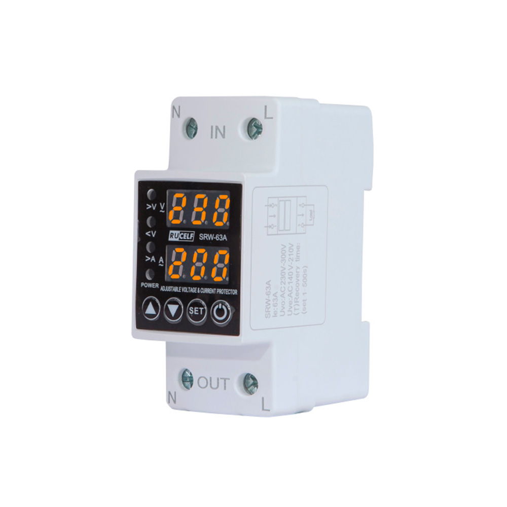 Верхний и нижний пределы напряжения устанавливает потребитель с помощью потенциометров на панели управления. При выходе напряжения за установленные пределы или обрыве нулевого провода реле отключает защищаемое оборудование. После восстановления сетевого напряжения реле включается автоматически. При циклической нестабильности напряжения питания (после 5 отключений в течении 2 минут) происходит отключение нагрузки на 5 минут. Если контролируемое напряжение находится в пределах заданного потенциометрами диапазона, контакты 11 и 12 исполнительного реле замкнуты — горит зеленый светодиод.