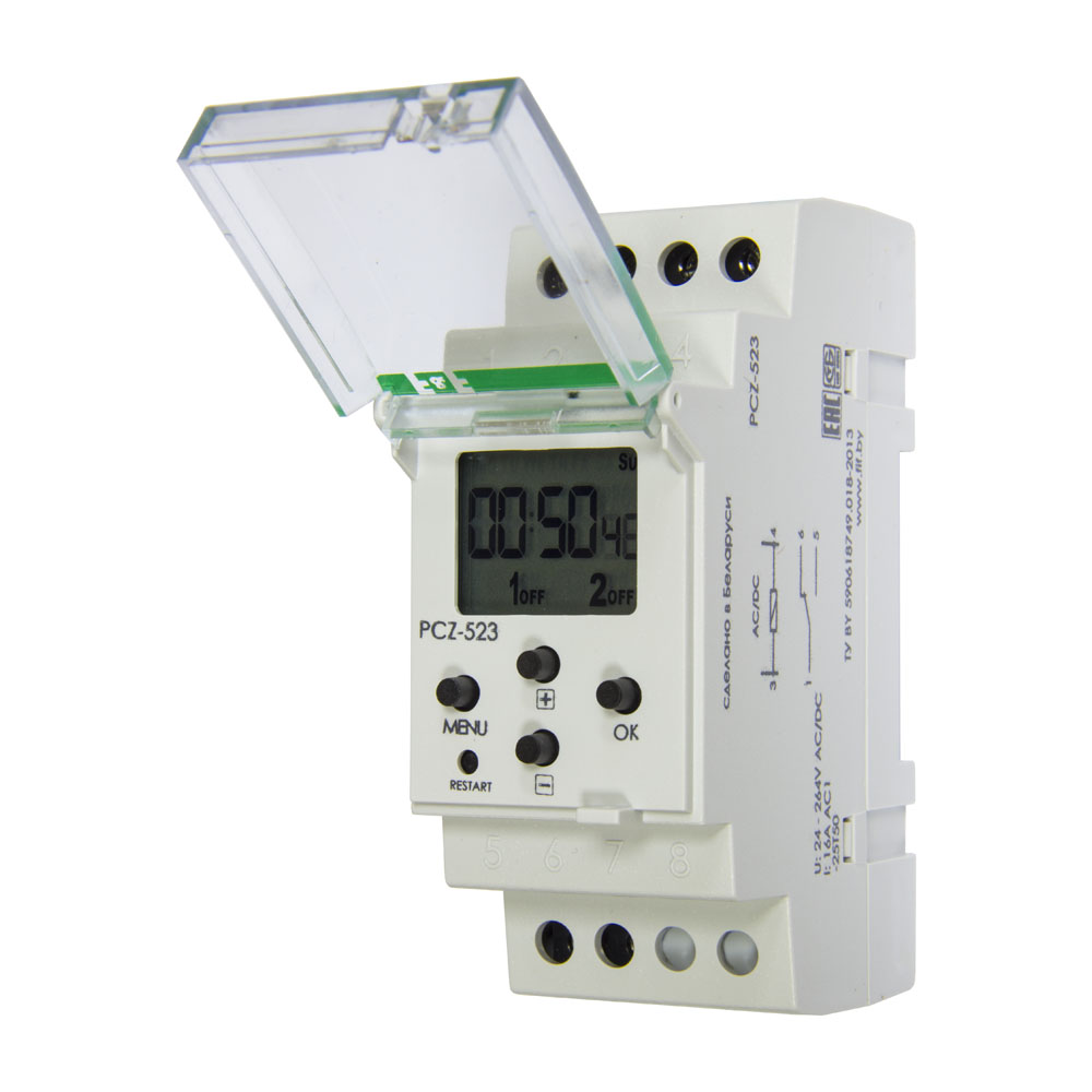 Реле времени программируемое импульсное PCZ-523 предназначено для включения электроприборов (нагрузки) на заданный отрезок времени длительность импульса) по установленной потребителем программе. Например: включение звонков в школе по расписанию уроков, электродвигателя конвейера и т.п. При программировании вводится время и длительность включения.