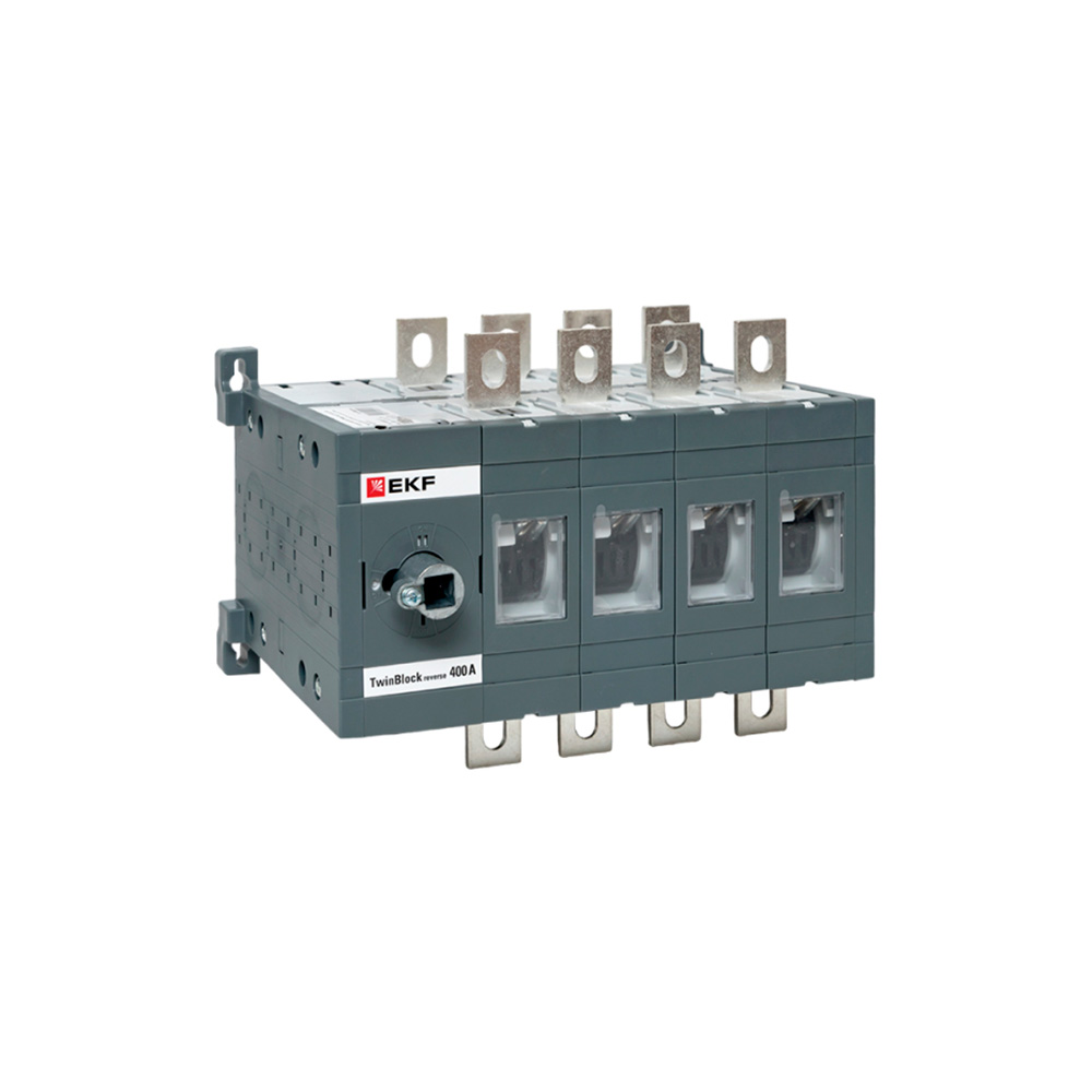 Рубильники серии TwinBlock предназначены для пропускания номинальных токов, включения и отключения электрических цепей номинальным напряжением до 690 В переменного тока частотой 50 и 60 Гц в устройствах распределения электрической энергии. Выключатели-разъединители серии TwinBlock (модели 40-800 А) имеют возможность подключения дополнительного четвертого полюса. Реверсивные рубильники серии TwinBlock предназначены для переключения нагрузки на резервную линию с разрывом питания (индикация положений на рубильнике I-0-II). Электрические характеристики реверсивных рубильников серии TwinBlock позволяют выполнять переключение под нагрузкой между двумя источниками питания, даже при токах с высокой индуктивной составляющей и пусковых токах двигателей.