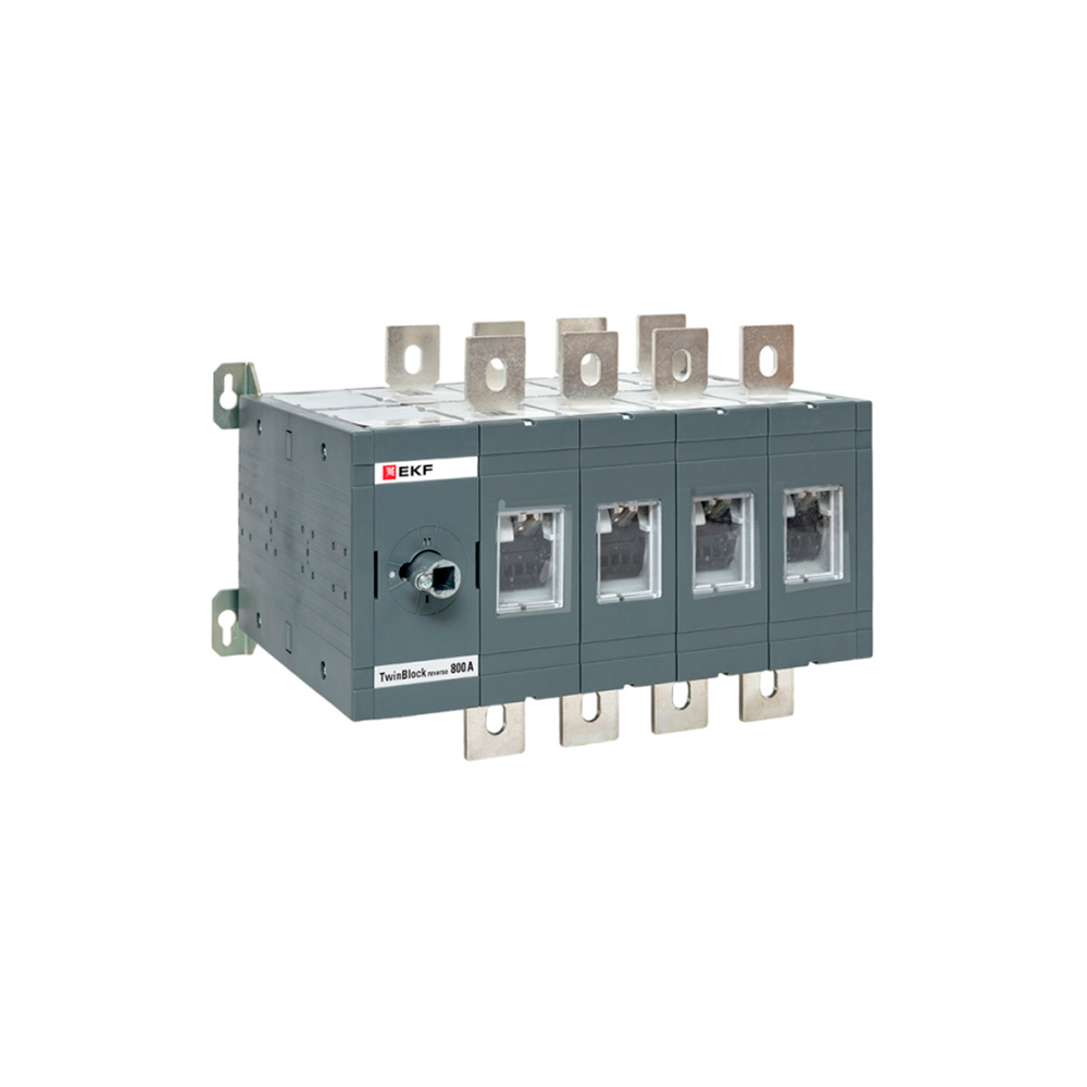 Рубильники серии TwinBlock предназначены для пропускания номинальных токов, включения и отключения электрических цепей номинальным напряжением до 690 В переменного тока частотой 50 и 60 Гц в устройствах распределения электрической энергии. Выключатели-разъединители серии TwinBlock (модели 40-800 А) имеют возможность подключения дополнительного четвертого полюса. Реверсивные рубильники серии TwinBlock предназначены для переключения нагрузки на резервную линию с разрывом питания (индикация положений на рубильнике I-0-II). Электрические характеристики реверсивных рубильников серии TwinBlock позволяют выполнять переключение под нагрузкой между двумя источниками питания, даже при токах с высокой индуктивной составляющей и пусковых токах двигателей.
