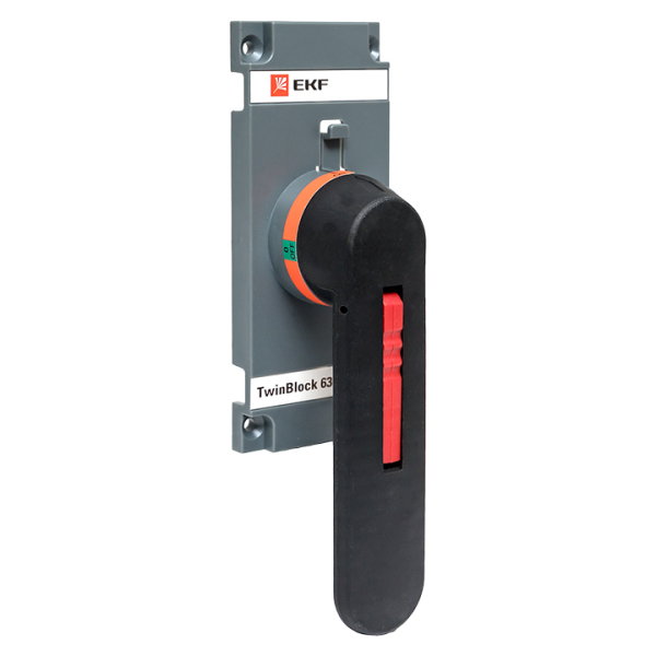 Рукоятка управления для прямой установки на рубильники TwinBlock EKF. Рубильники серии TwinBlock предназначены для пропускания номинальных токов, включения и отключения электрических цепей номинальным напряжением до 690 В переменного тока частотой 50 и 60 Гц в устройствах распределения электрической энергии. Для моделей без рукоятки предусмотрены два типа рукояток: выносная рукоятка для управления через дверь и рукоятка управления для прямой установки на рубильник.