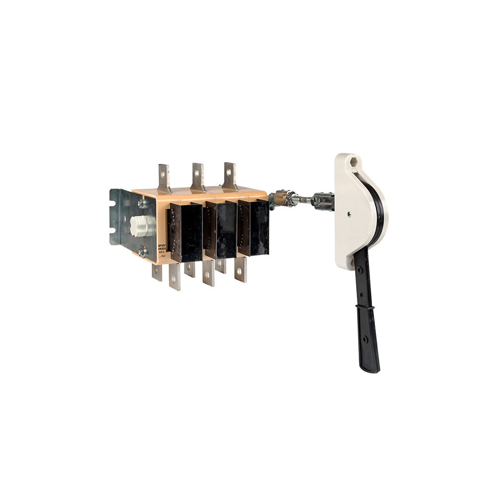 Конструкция контактных выводов обеспечивает болтовое присоединение шин или проводников, оконцованных кабельными наконечниками. Все рубильники являются универсальными по типу присоединения рукоятки. Конструкция рубильника предусматривает установку рукоятки как справа от корпуса, так и слева. Расположение рукоятки, левое или правое, можно поменять в процессе эксплуатации при необходимости.