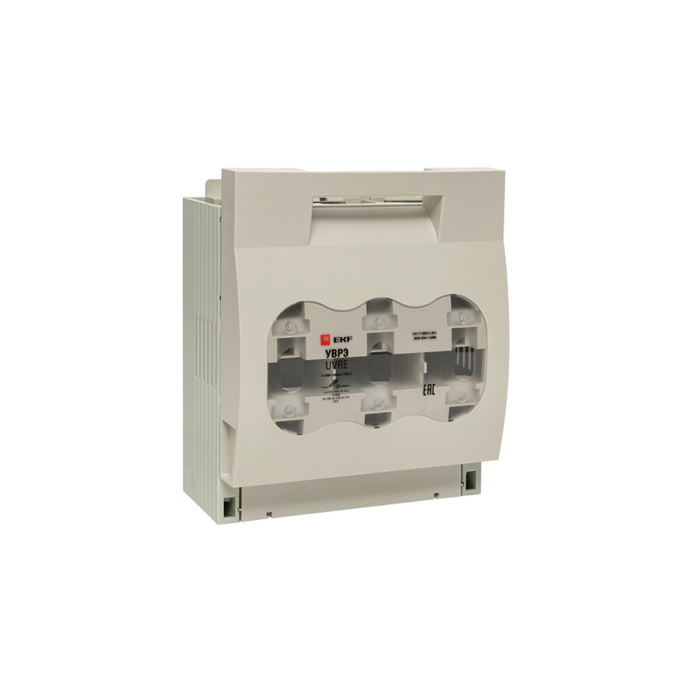 Выключатели-разъединители ВРЭ EKF PROxima предназначены для ручного включения-отключения цепей переменного тока номинальным напряжением до 500 В / 690 В (ВРЭ/ВРЭ с предохранителями) частотой 50 Гц, а также для защиты от коротких замыканий и перегрузки в моделях с плавкими предохранителями (предохранители в комплект поставки не включены). Двойной видимый разрыв цепи и прочный корпус с функцией дугогасительной камеры, выполненный из негорючего полиамида со стекловолокном, обеспечивают максимальную безопасность переключения. Фронтальная защита от прикосновений обеспечивается защитной крышкой. Применяются в качестве аварийного или главного выключателя для токов от 160 до 630 А во вводно-распределительных устройствах, распределительных и шкафах управления и др. Устанавливаются на монтажную панель. Конструктивно ВРЭ EKF PROxima состоит из трехполюсного основания с механизмом замыкания/размыкания контактов и дугогасительными камерами, прозрачной защитной крышки для визуального определения положения контактов и рукоятки. Конструкция контактных выводов обеспечивает болтовое присоединение шин или проводников, оконцованных кабельными наконечниками. Есть возможность установки замка для блокировки включения/отключения. Выключатели-разъединители ВРЭ EKF PROxima поставляются с передней рукояткой с возможностью выноса ее на дверцу шкафа. Выключатели могут дополнительно оснащаться электромеханическим дополнительным контактом состояния NO + NC.