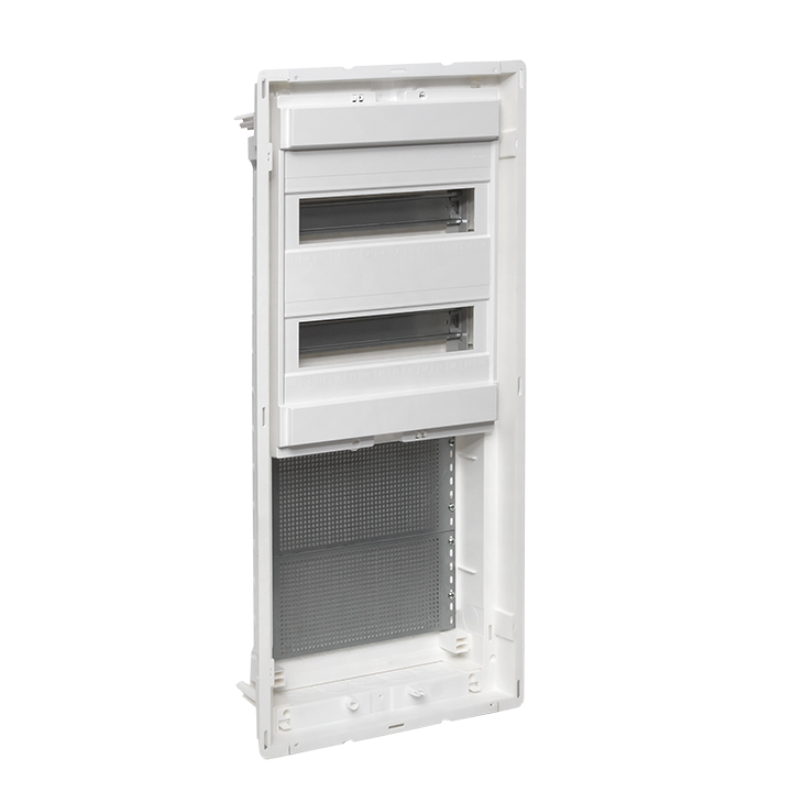Корпуса пластиковые серии «Nova» предназначены для сборки силовых, слаботочных и комбинированных щитов. На DIN-рейки устанавливается модульное оборудование. На монтажные платы – антенные разветвители, Wi-Fi роутеры, патч-панели и иное слаботочное оборудование. Щиты устанавливаются как в бетонные и кирпичные стены, так и в гипсокартон, монтажные комплекты для установки в гипсокартон входят в комплектацию оснований щитов либо в комплектацию щитов в сборе. Двери щитов можно выбрать их разных материалов – пластик, металл или металл с перфорацией. Также доступны дополнительные аксессуары, необходимые для установки мультимедийного оборудования и существенно упрощающих монтаж щитов. Есть возможность приобрести как отдельно основание щита и дверь, так и основание с дверью в комплекте в одной коробке. Основные преимущества: съемные шасси с din-рейками, съемные кабельные фланцы, гребенка для фиксации входящих проводников, регулировка дверей по глубине, современный минималистичный дизайн.