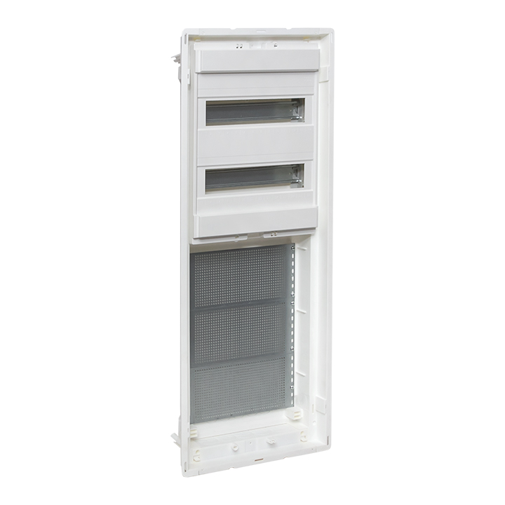 Корпуса пластиковые серии «Nova» предназначены для сборки силовых, слаботочных и комбинированных щитов. На DIN-рейки устанавливается модульное оборудование. На монтажные платы – антенные разветвители, Wi-Fi роутеры, патч-панели и иное слаботочное оборудование. Щиты устанавливаются как в бетонные и кирпичные стены, так и в гипсокартон, монтажные комплекты для установки в гипсокартон входят в комплектацию оснований щитов либо в комплектацию щитов в сборе. Двери щитов можно выбрать их разных материалов – пластик, металл или металл с перфорацией. Также доступны дополнительные аксессуары, необходимые для установки мультимедийного оборудования и существенно упрощающих монтаж щитов. Есть возможность приобрести как отдельно основание щита и дверь, так и основание с дверью в комплекте в одной коробке. Основные преимущества: съемные шасси с din-рейками, съемные кабельные фланцы, гребенка для фиксации входящих проводников, регулировка дверей по глубине, современный минималистичный дизайн.