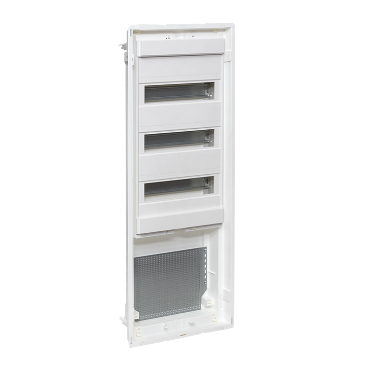 Корпуса пластиковые серии «Nova» предназначены для сборки силовых, слаботочных и комбинированных щитов. На DIN-рейки устанавливается модульное оборудование. На монтажные платы – антенные разветвители, Wi-Fi роутеры, патч-панели и иное слаботочное оборудование. Щиты устанавливаются как в бетонные и кирпичные стены, так и в гипсокартон, монтажные комплекты для установки в гипсокартон входят в комплектацию оснований щитов либо в комплектацию щитов в сборе. Двери щитов можно выбрать их разных материалов – пластик, металл или металл с перфорацией. Также доступны дополнительные аксессуары, необходимые для установки мультимедийного оборудования и существенно упрощающих монтаж щитов. Есть возможность приобрести как отдельно основание щита и дверь, так и основание с дверью в комплекте в одной коробке. Основные преимущества: съемные шасси с din-рейками, съемные кабельные фланцы, гребенка для фиксации входящих проводников, регулировка дверей по глубине, современный минималистичный дизайн.