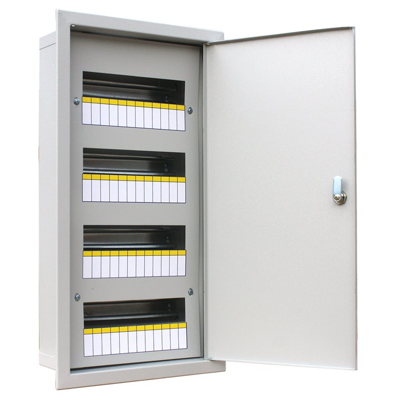 Щит распределительный встраиваемый ЩРВ 48 предназначен для сборки электрощитов с применением модульной аппаратуры (на DIN-рейку), для приема и распределения электрической энергии в жилых, административных и производственных помещениях. Разработан для увеличения скорости монтажа и удобства подключения оборудования. Металлический корпус распределительного щита имеет тип защитного покрытия ППК (порошковая полиэфирная краска). ППК отличается высокими защитными свойствами, стойкостью к механическим повреждениям и к истиранию, а также атмосферостойкостью. Щит не боится царапин, прочен и имеет степень защиты IP31.