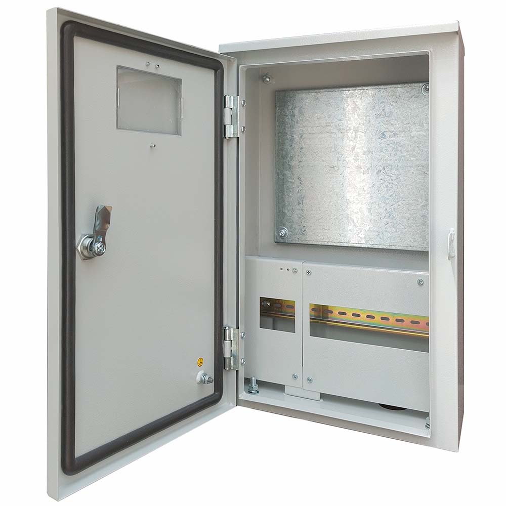 Служит для организации ввода электроэнергии в здание и размещения двух устройств учета однофазной и трехфазной сети. Применяется при стандартных проектах, не требующих размещения крупногабаритного и дополнительного оборудования.