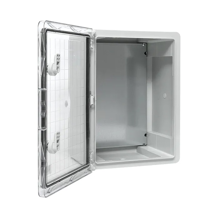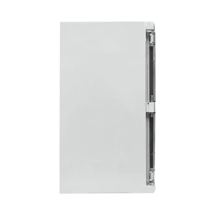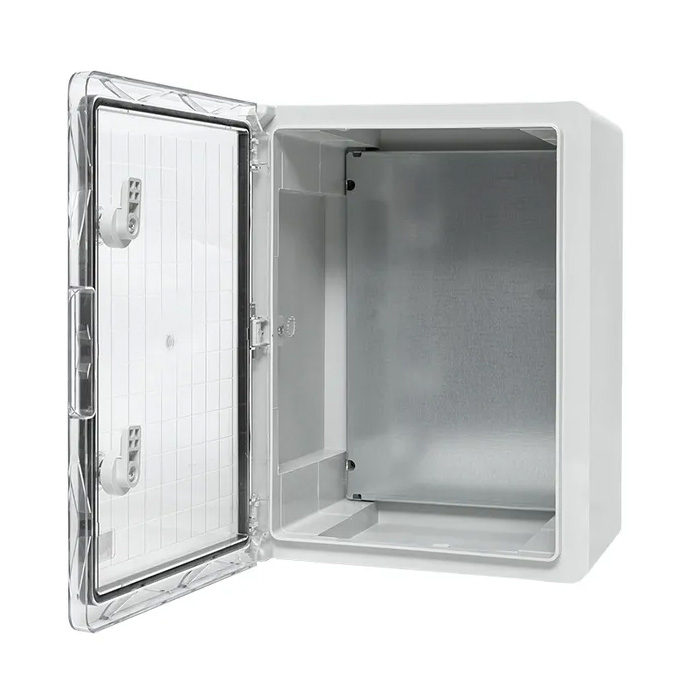 Корпус изготовлен из ударопрочного АБС-пластика, устойчивого к механическим воздействиям и коррозии, что обеспечивает долговечность и сохранение внешнего вида в различных условиях эксплуатации. Прозрачная дверца позволяет визуально контролировать состояние установленных аппаратов (положение автоматов, индикацию) без открывания шкафа, что повышает безопасность и удобство обслуживания. Наличие замка предотвращает несанкционированный доступ к оборудованию.