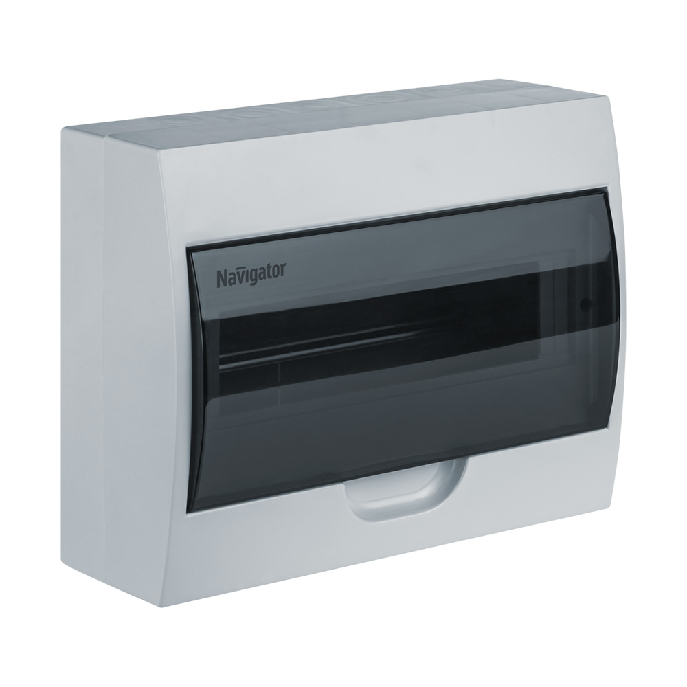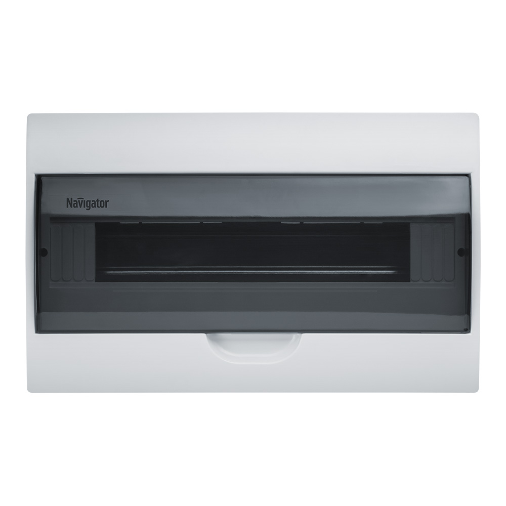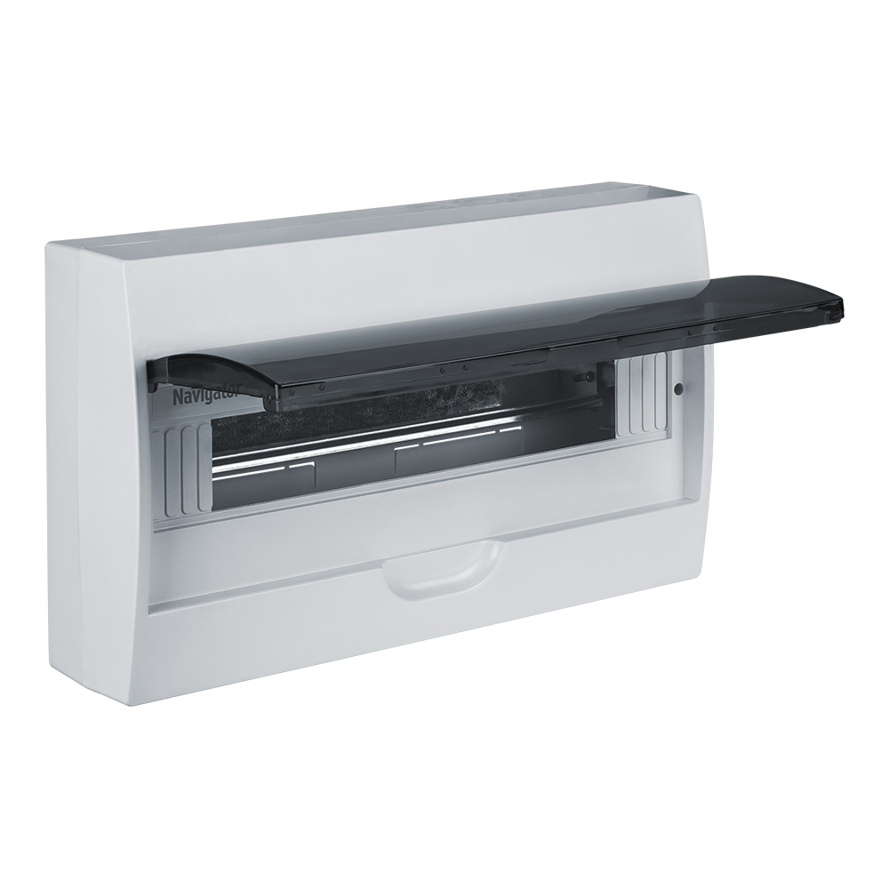 Navigator 93 798 NSS-DBW-18-WH-IP41 — пластиковый навесной распределительный щит (бокс) из ударопрочного АБС-пластика с прозрачной дверцей из поликарбоната, степенью защиты IP41, на 18 модулей, предназначенный для установки модульного оборудования управления, защиты и контроля (автоматические выключатели, УЗО, таймеры, счётчики, реле) в жилых, офисных, производственных и промышленных помещениях.