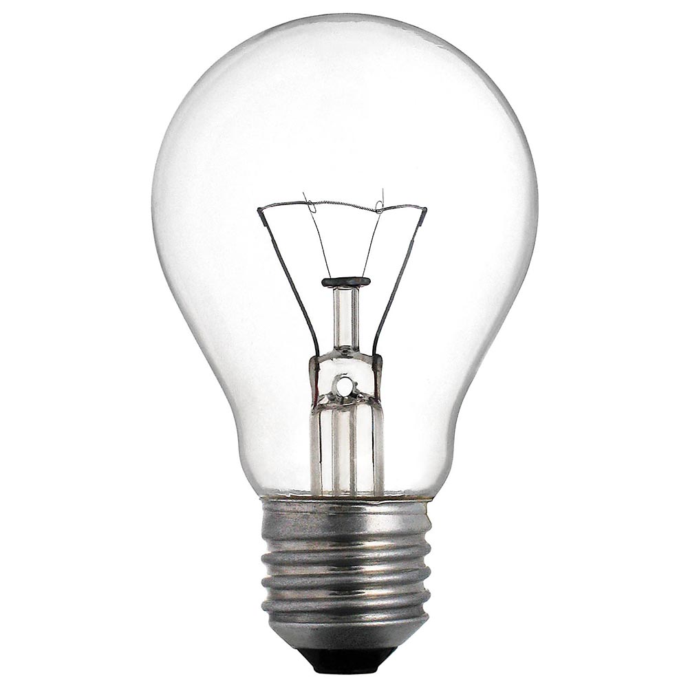 Колба лампы – прозрачная грушевидной, грибковой, формы, а также формы свечи и шарика. Лампы поставляются со стандартными цоколями E27/Е14 в мощностях: 25 Вт, 40 Вт, 60 Вт, 75 Вт, 95 Вт, 150 Вт, 200 Вт и 500 Вт. Средний срок службы лампы накаливания составляет 1000 часов.