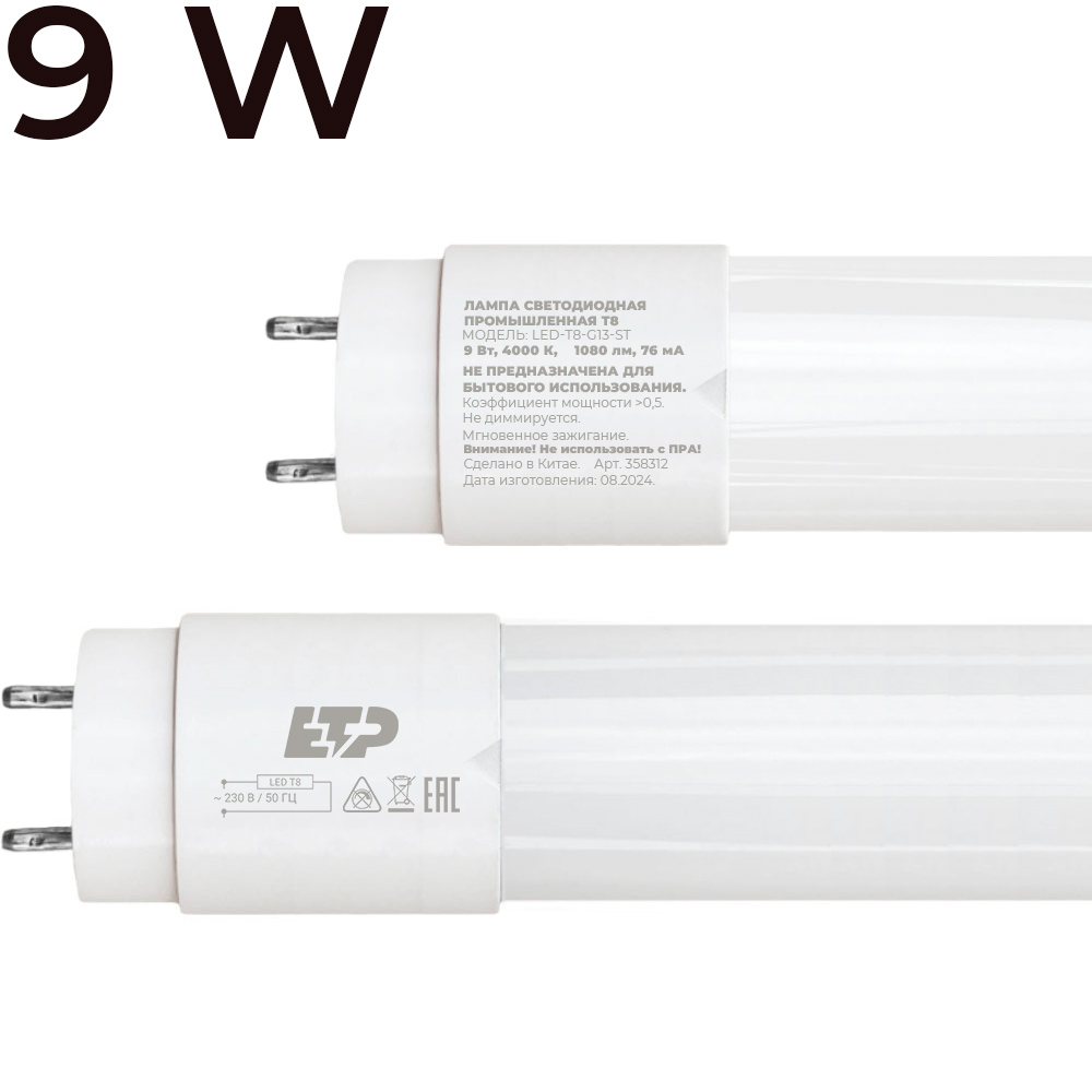 Светодиодная лампа T8 9W 4000K модели LED-T8-G13-ST ETP – современный источник света, успевший заслужить доверие покупателей, став улучшенным аналогом люминесцентной лампы. Представляет собой трубку 614мм из матового стекла, внутри которой расположены драйвер и светодиодная лента. Лампа T8 от ETP обеспечивает европейское качество, сочетая в себе доступную цену и отличные характеристики.
