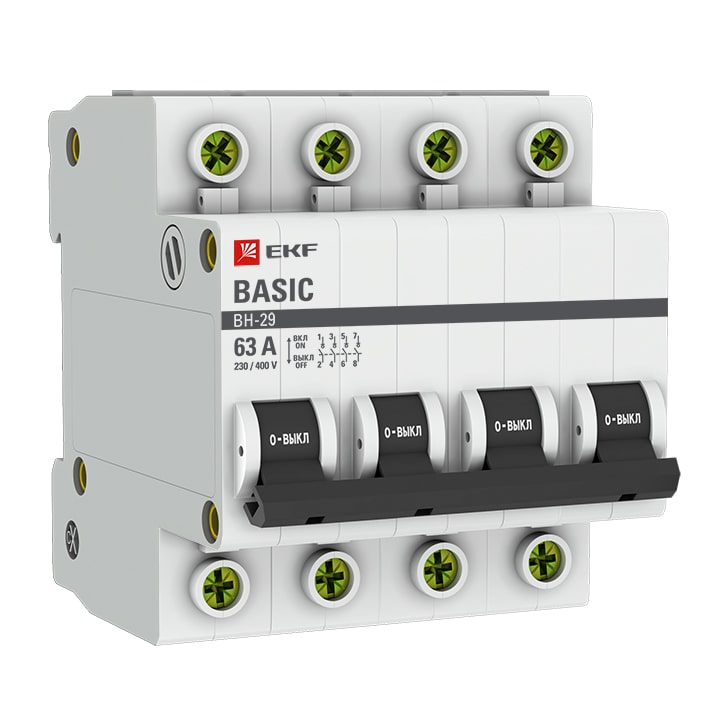 Выключатели нагрузки ВН-29 EKF Basic предназначены для оперативного управления участками электрических цепей. Выключатели производятся в одно-, двух-, трех- и четыреполюсном исполнениях.