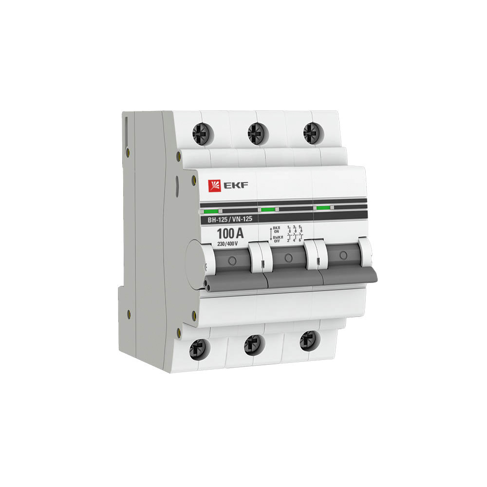 Выключатели нагрузки ВН-63 и ВН-125 EKF PROxima предназначены для оперативного управления участками электрических цепей. Выключатели производятся в одно-, двух-, трехи четырехполюсном исполнениях. Выключатели нагрузки ВН-63 (125) EKF PROxima выполнены в новом, уникальном дизайне корпуса из не поддерживающей горение пластмассы и взаимозаменяемы с ВН-63 (100).