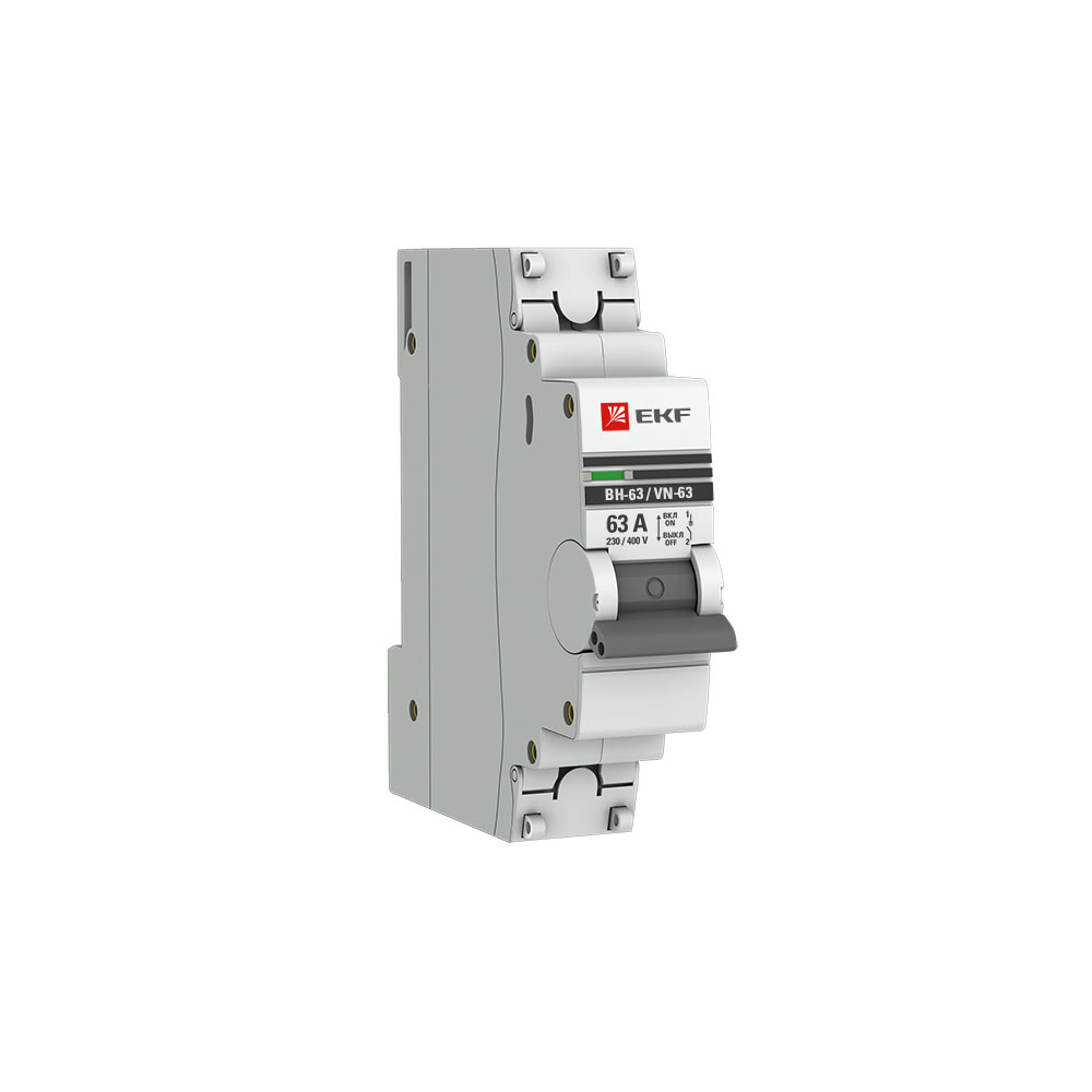 Выключатели нагрузки ВН-63 EKF PROxima предназначены для оперативного управления участками электрических цепей, т.е. управляют процессом включения-выключения номинальных токов в отходящей цепи. Выключатели производятся в одно-, двух-, трехполюсном исполнениях. Выключатели нагрузки ВН-63 EKF PROxima выполнены в корпусе из не поддерживающей горение пластмассы. Насечки на контактных зажимах предотвращают перегрев и оплавление проводов за счет более плотного и большего по площади контакта. На лицевой панели реализован механический индикатор положения контактов (включено/отключено). Эргономичная рукоятка управления исключает соскальзывание пальцев. Геометрия боковых поверхностей изделия разработана для улучшения теплового режима.