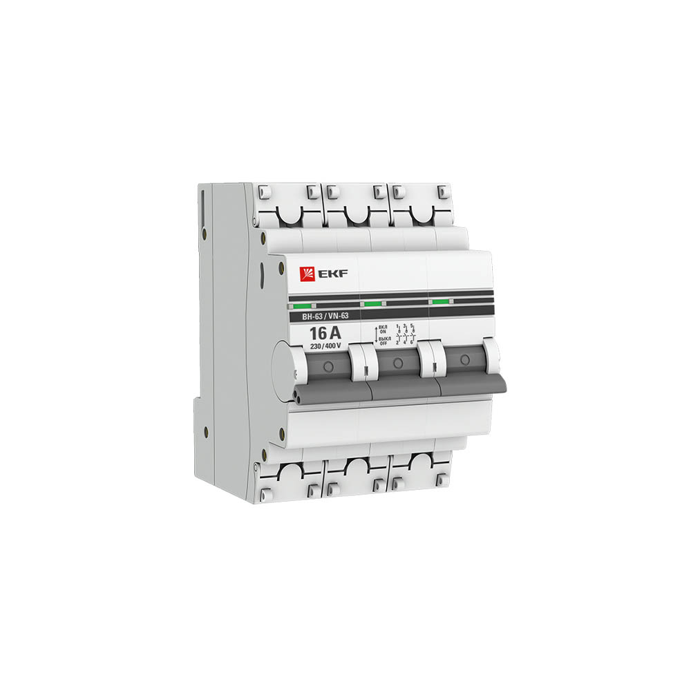 Выключатели нагрузки ВН-63 EKF PROxima предназначены для оперативного управления участками электрических цепей, т.е. управляют процессом включения-выключения номинальных токов в отходящей цепи. Выключатели производятся в одно-, двух-, трехполюсном исполнениях. Выключатели нагрузки ВН-63 EKF PROxima выполнены в корпусе из не поддерживающей горение пластмассы. Насечки на контактных зажимах предотвращают перегрев и оплавление проводов за счет более плотного и большего по площади контакта. На лицевой панели реализован механический индикатор положения контактов (включено/отключено). Эргономичная рукоятка управления исключает соскальзывание пальцев. Геометрия боковых поверхностей изделия разработана для улучшения теплового режима.