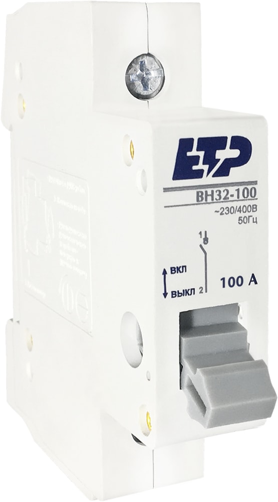Выключатели нагрузки ВН 32-100 ETP предназначены для оперативного управления участками электрических цепей, т.е. управляют процессом включения-выключения номинальных токов в отходящей цепи. Выключатели нагрузки ВН 32-100 ETP выполнены в корпусе из не поддерживающей горение пластмассы. Насечки на контактных зажимах предотвращают перегрев и оплавление проводов за счет более плотного и большего по площади контакта. На лицевой панели реализован механический индикатор положения контактов (включено/отключено). Эргономичная рукоятка управления исключает соскальзывание пальцев. Геометрия боковых поверхностей изделия разработана для улучшения теплового режима.