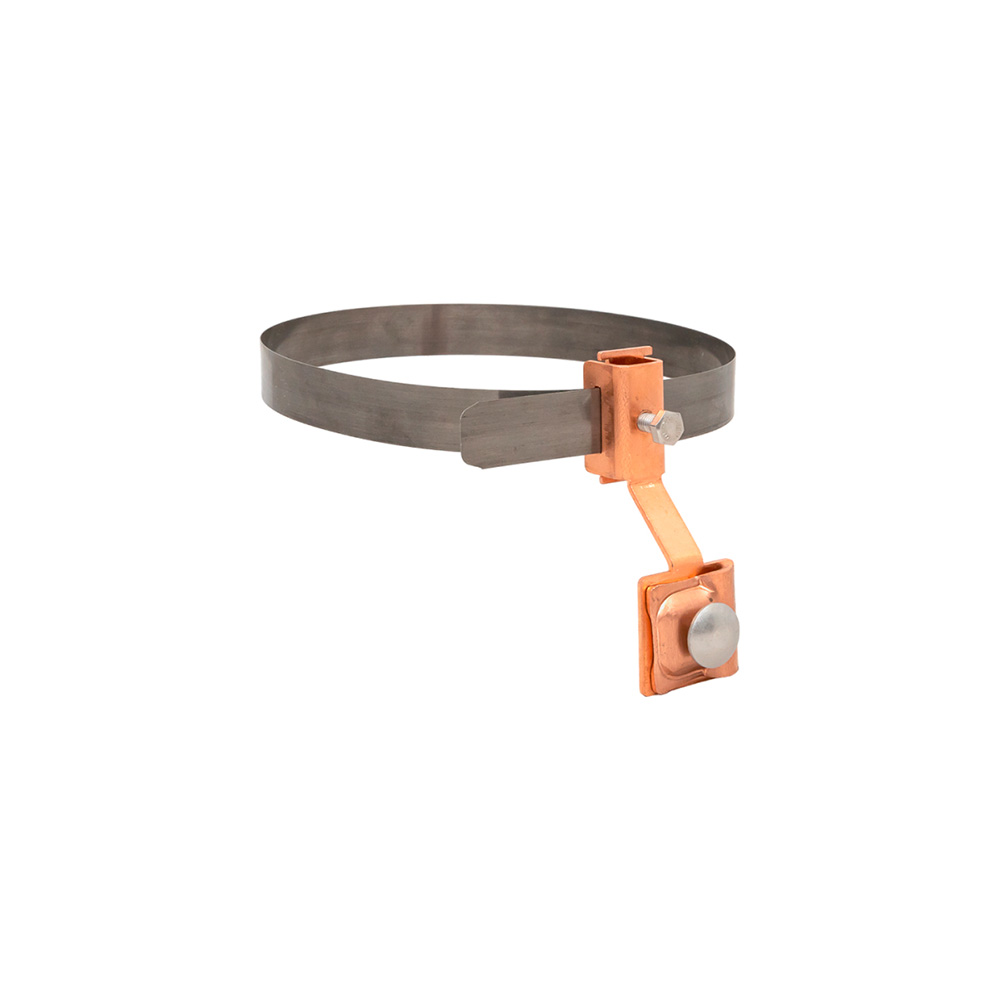 Держатель для водосточных труб универсальный фиксирует токоотвод 6–10 мм к водосточной трубе диаметром до 160 мм.