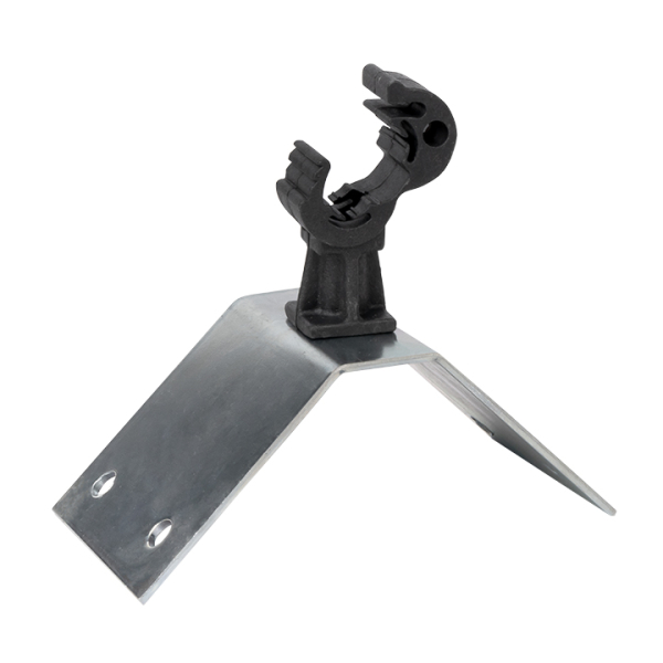 Держатель кровельный на конёк с пластиковым фиксатором фиксирует токоотвод 8–10 мм на коньке крыши. Высота крепления прута от конька равна 30 мм.