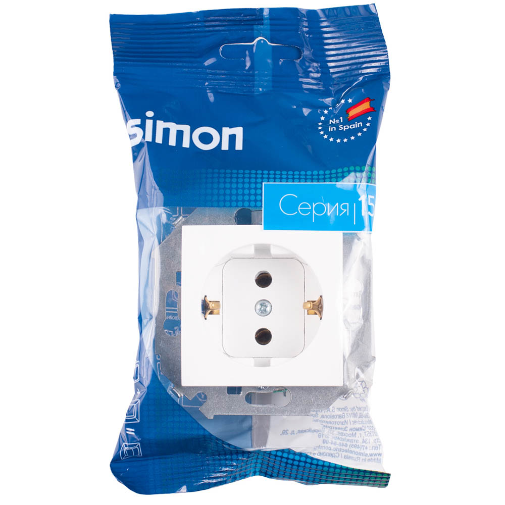 Белая розетка с заземлением Simon 15 2Р+Е 16A изготовлена из поликарбоната и АБС-пластика, что позволяет обеспечить надёжность и долговечность по доступной цене. Медная контактная группа с добавлением серебра не теряет высокую упругость даже спустя много лет эксплуатации. Лицевая панель белых розеток Симон 15 из прочного АБС-пластика крепится на винт и устойчива к UV-излучению и механическому воздействию.