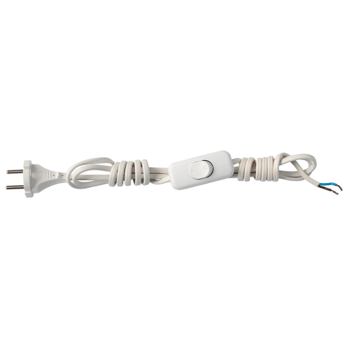 Электрический шнур с выключателем предназначен для подключения бытовых устройств к электросети. Конструкция включает две жилы сечением 0,75 мм², одна из сторон завершена литой плоской вилкой, обеспечивающей надёжное соединение с сетью. Противоположный конец имеет контакты, готовые к монтажу. В центральной части кабеля встроен удобный переключатель в прочном пластиковом корпусе, позволяющий легко управлять подачей питания.
