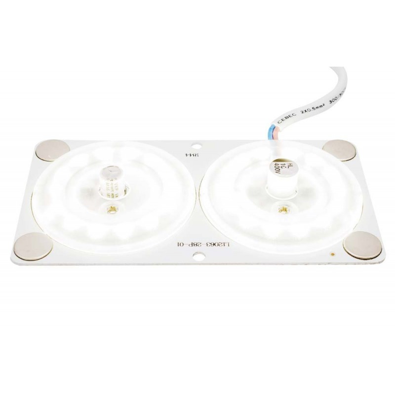 Светодиодная плата с линзами 2-17 предназначена для замены стандартных ламп, а также современных светодиодных источников свечения, которые уже повсеместно используются в настенно-потолочных светильниках. Преимуществами изделия является его конструкция, которая повышает степень освещенности, а также большая площадь охлаждения, которая увеличивает срок службы. Световой поток равен 1920 Лм, что эквивалентно 190 Вт. Светодиодная плата имеет прямоугольную форму с размером 120х63 мм. Благодаря отсутствию мерцания светового потока отлично подходит для использования в жилых помещенияххх, а также административных, медицинских и производственных учреждениях.