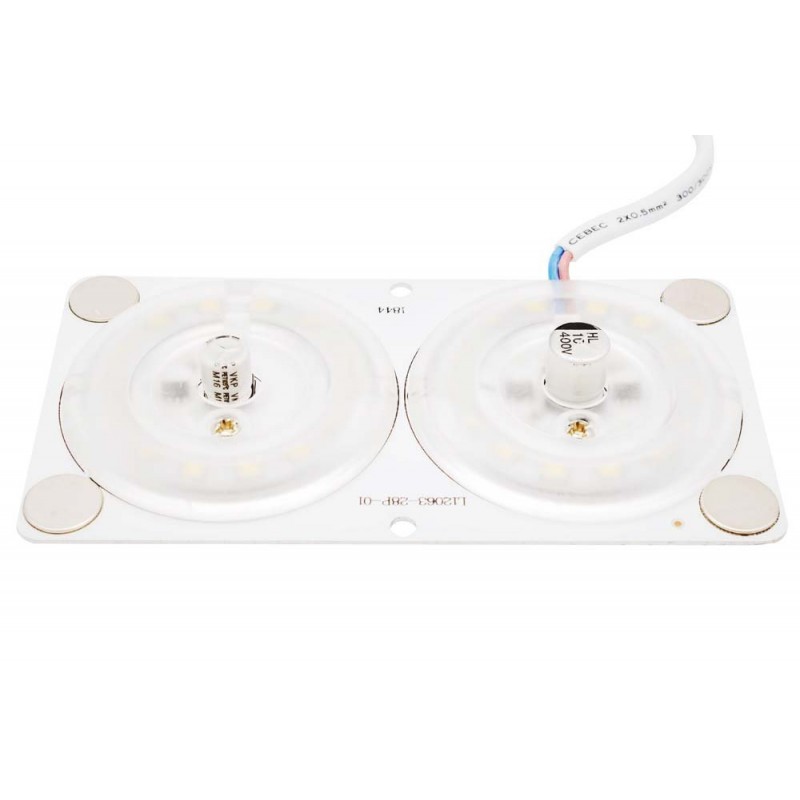 Светодиодная плата с линзами 2-16 предназначена для замены стандартных ламп, а также современных светодиодных источников свечения, которые уже повсеместно используются в настенно-потолочных светильниках. Преимуществами изделия является его конструкция, которая повышает степень освещенности, а также большая площадь охлаждения, которая увеличивает срок службы. Световой поток равен 1920 Лм, что эквивалентно 190 Вт. Светодиодная плата имеет прямоугольную форму с размером 120х63 мм. Благодаря отсутствию мерцания светового потока отлично подходит для использования в жилых помещенияххх, а также административных, медицинских и производственных учреждениях.