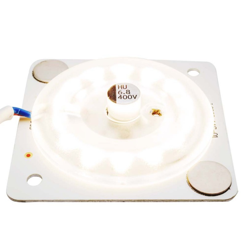 Светодиодная плата с линзами 2-13 предназначена для замены стандартных ламп, а также современных светодиодных источников свечения, которые уже повсеместно используются в настенно-потолочных светильниках. Преимуществами изделия является его конструкция, которая повышает степень освещенности, а также большая площадь охлаждения, которая увеличивает срок службы. Световой поток равен 960 Лм, что эквивалентно 95 Вт. Светодиодная плата имеет квадратную форму с размером 63х63 мм. Благодаря отсутствию мерцания светового потока отлично подходит для использования в жилых помещенияххх, а также административных, медицинских и производственных учреждениях.
