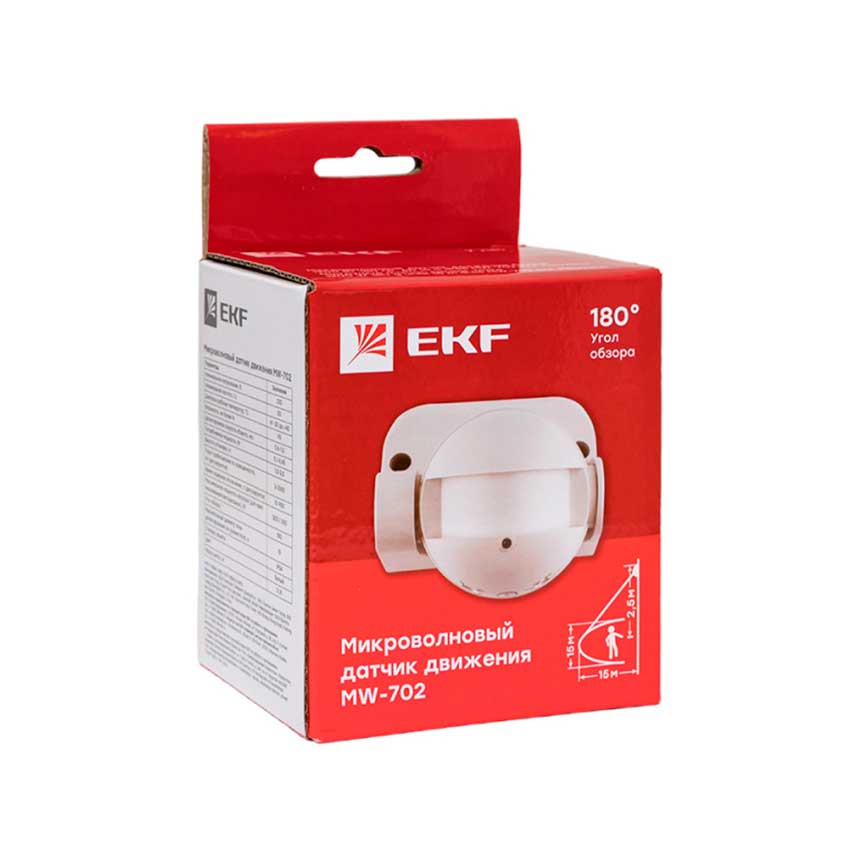 Датчик движения микроволновый MW-702 предназначен для экономии электроэнергии за счет автоматического управления освещением и другими инженерными системами. Датчик реагирует на движение людей и других объектов в зоне действия сенсора, принцип работы датчика основан на генерировании высокочастотных электромагнитных волн и детектировании полученного эха. Таким образом микроволновые датчики имеют повышенную чувствительность и могут детектировать движение сквозь тонкие преграды (гипсокартон, стекло, подвесной потолок и т.д.). Датчик MW-702 предназначен для установки на стену накладным способом. Сенсор датчика имеет регулируемый в вертикальной плоскости поворотный механизм, что позволяет нацелить его на необходумую зону. Рекомендуется использовать датчик в корридорах, подъездах, различных проходных зонах. Возможно использование на улице под навесом.