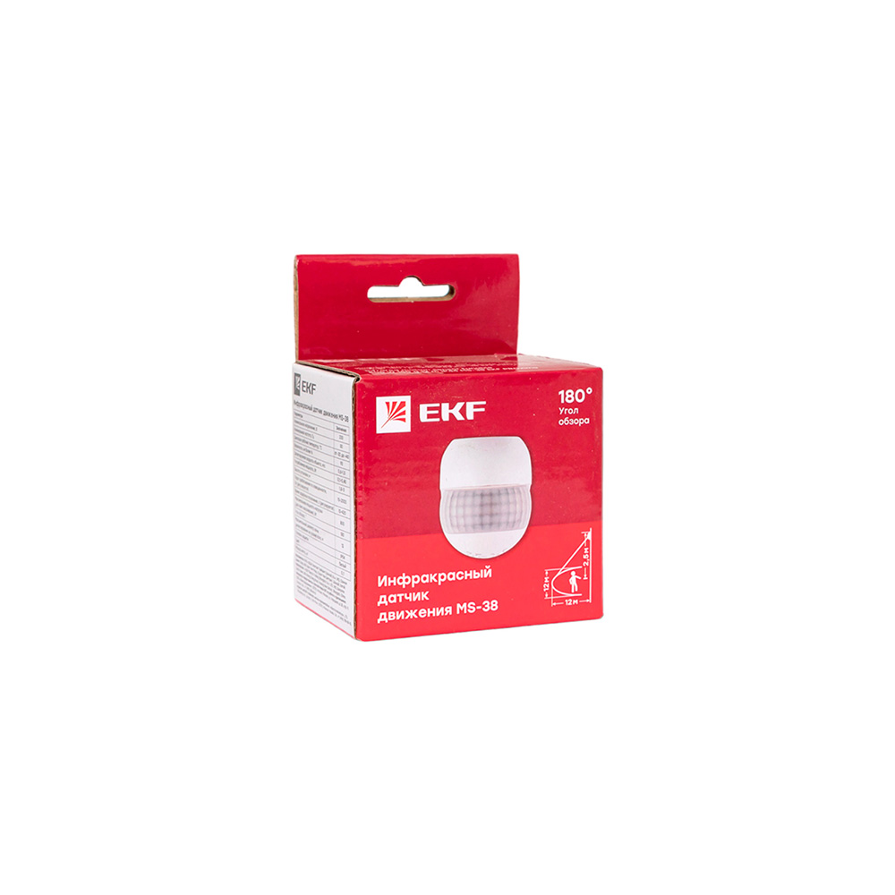 Датчик движения инфракрасный MS-38 предназначен для экономии электроэнергии за счет автоматического управления освещением и другими инженерными системами. Датчик реагирует на движение людей и других объектов в зоне действия сенсора, принцип работы датчика основан на отслеживании уровня ИК-излучения в поле зрения. Датчик MS-38 предназначен для установки на стену накладным способом. Сенсор датчика имеет регулируемый в 2ух плоскостях поворотный механизм, что позволяет нацелить его на необходумую зону. Рекомендуется использовать датчик в корридорах, подъездах, различных проходных зонах. Возможно использование на улице под навесом. Алгоритм работы: при возникновении движения в поле зрения датчика встроенное электромеханическое реле (рассчитано на полную мощность 800Вт) коммутирует подключенную нагрузку. После этого нагрузка находится под напряжением в течение заданного времени (от 10 сек. до 7 минут, время настраивается) и выключается. Дополнительно датчик имеет функцию контроля освещенности.