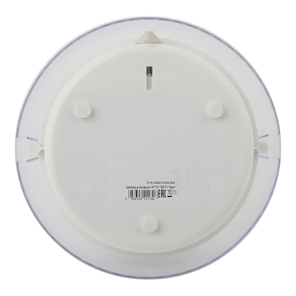 Корпус и рассеиватель выполнены из ударопрочного поликарбоната базового белого цвета, что обеспечивает механическую прочность, устойчивость к коррозии и сохранение внешнего вида в течение всего срока эксплуатации. Степень защиты IP54 гарантирует надёжную защиту от пыли и водяных брызг, позволяя устанавливать светильник как внутри сухих помещений, так и в местах с повышенной влажностью — в ванных комнатах, прихожих, подвалах, гаражах и других вспомогательных зонах.