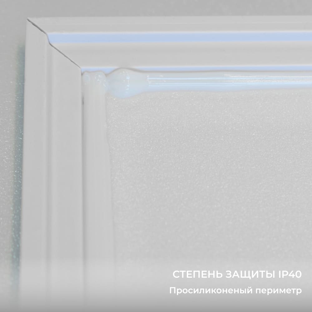 Степень защиты IP40 Повышенная степень защиты достигнута за счет нанесения слоя силикона по периметру изделия, во избежание попадания частиц, размером от 1мм, и насекомых внутрь изделия. |