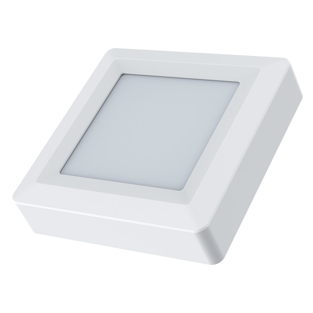 Накладной квадратный светодиодный светильник даунлайт ETP мощностью 6 Вт применяется для общего освещения небольших бытовых помещений и для местного освещения дизайнерских и архитектурных элементов интерьера. Легкий вес и удобный монтаж, позволяют использовать его на любых потолках.