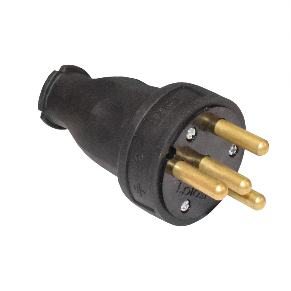 Трехфазная силовая розетка характеризуется наличием трех контактов и одним контактом для ноля. Максимальный предел тока равен 380 В.