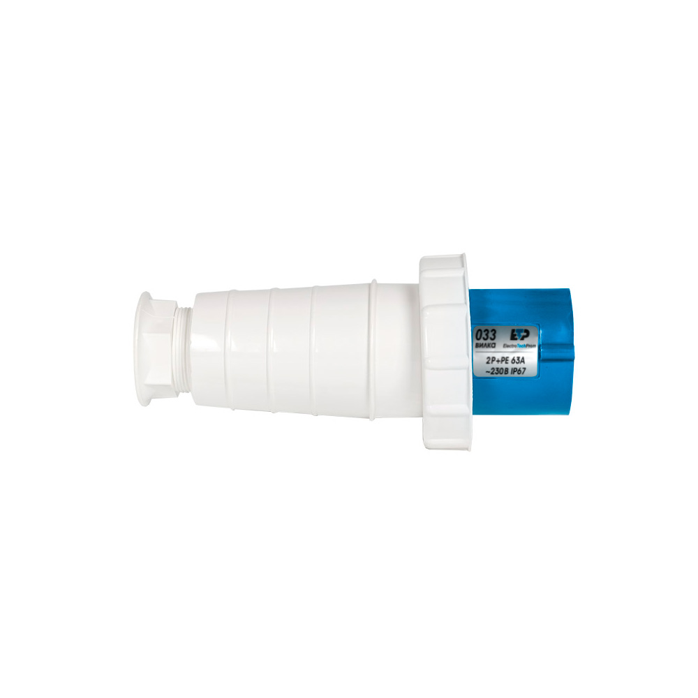 Вилка силовая №033 2Р+РЕ 63А 220В IP67 ETP – мобильный силовой разъем, предназначенный для подключения мощных электрических приборов и оборудования, которые потребляют мощность до 13 кВт.